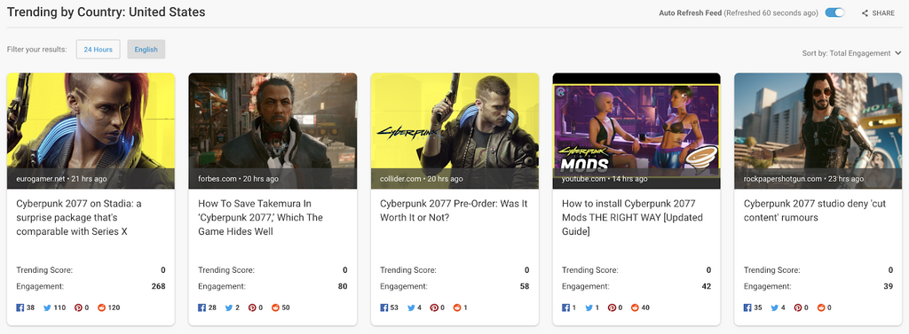 Recently, BuzzSumo alerted me to the momentous problems with Cyberpunk 2077 because I created a specific Custom Feed.