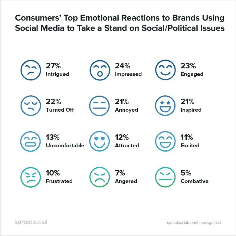 And, according to a recent report by Sprout Social, 66% of consumers say it’s important for brands to take public stands on social and political issues. And more than half (58%) are open to this happening on social media.
