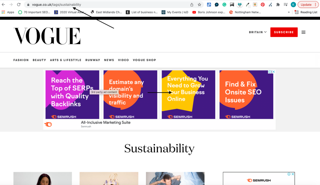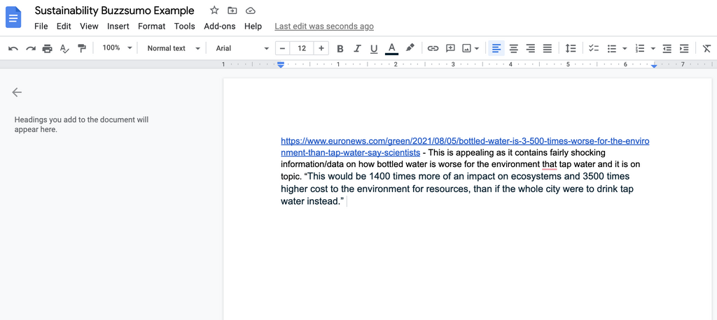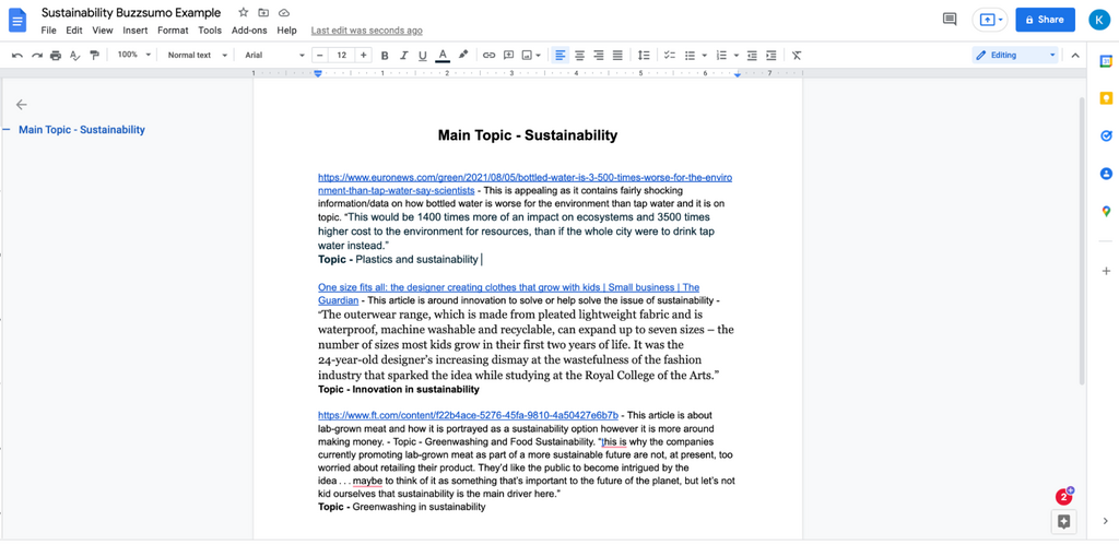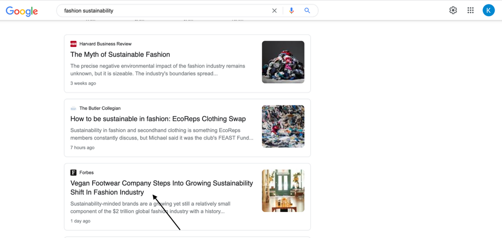 Find topics that are relevant to the product/service you offer and the solution it solves. For this example, we will use “Sustainability” as it is a hot topic in the media right now.