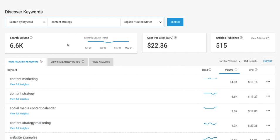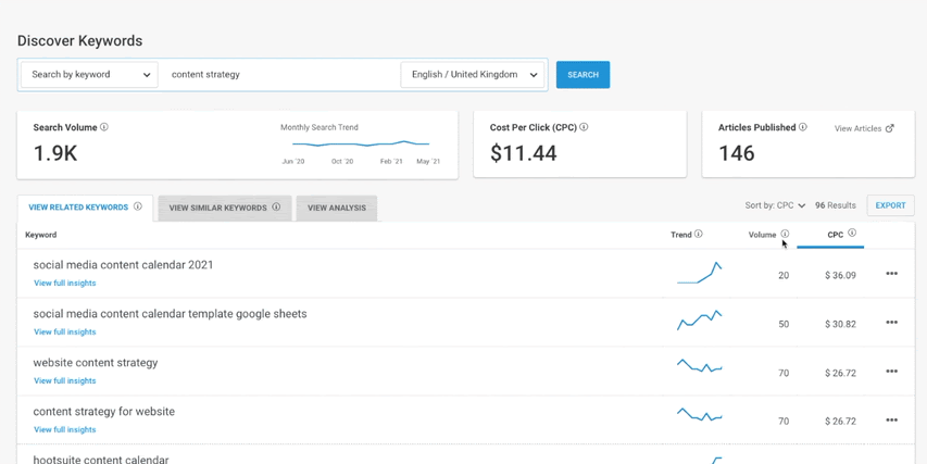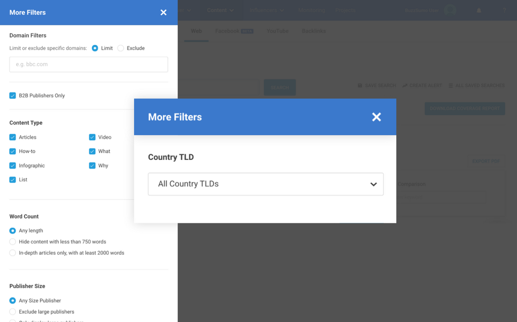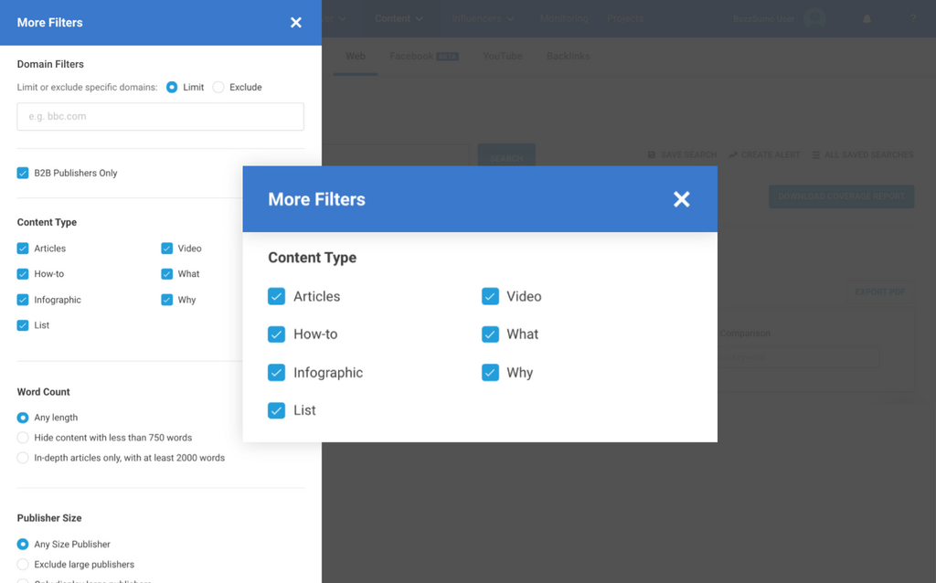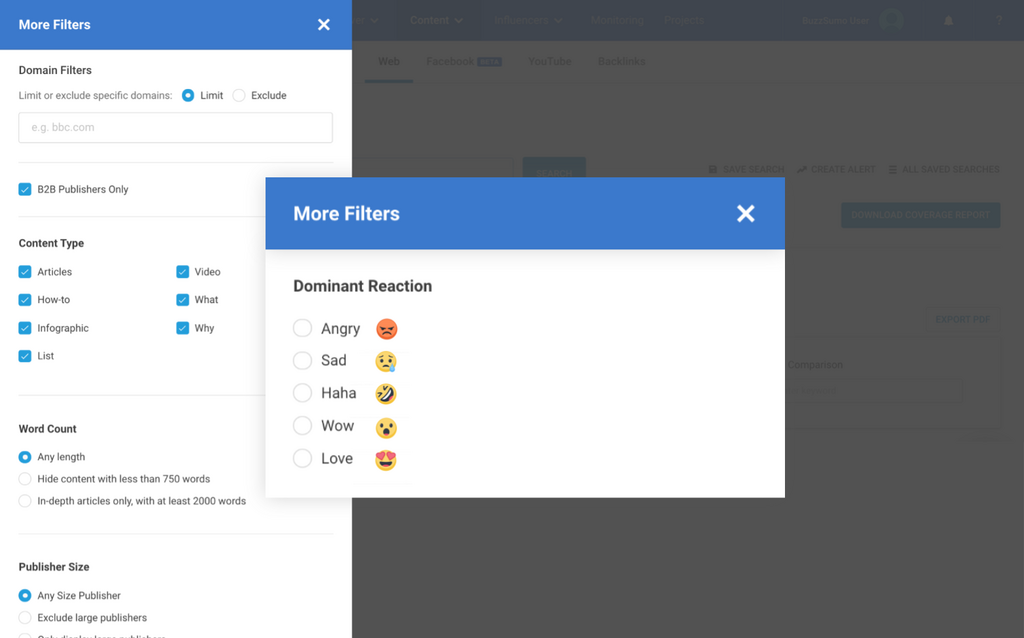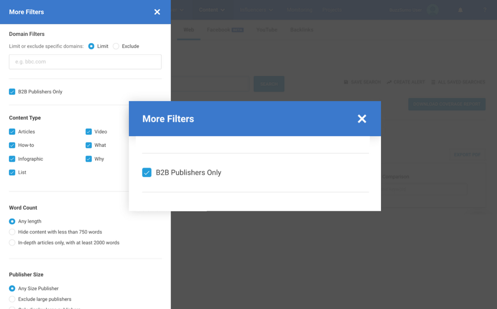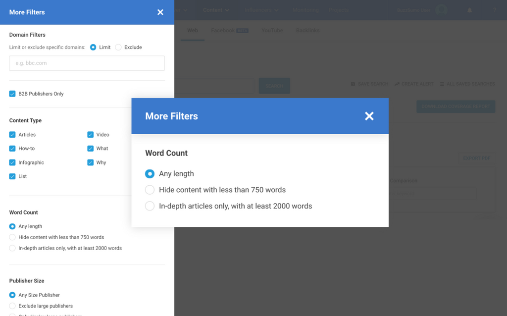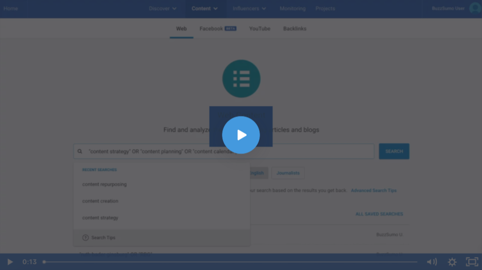 Enter any topic, term or url to search to see BuzzSumo in action. It’s free!