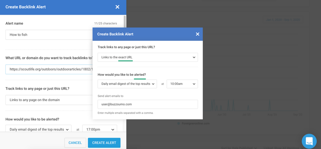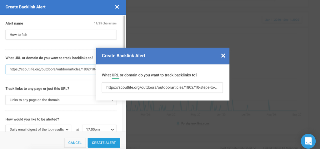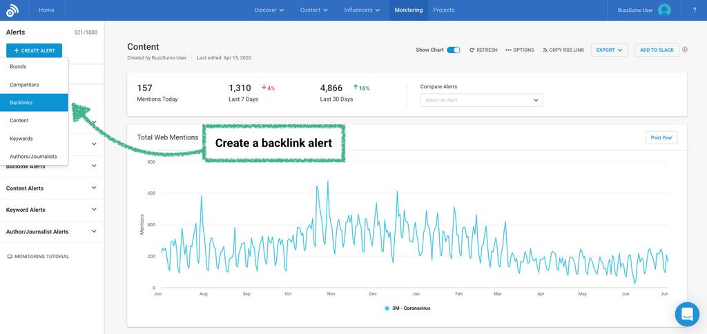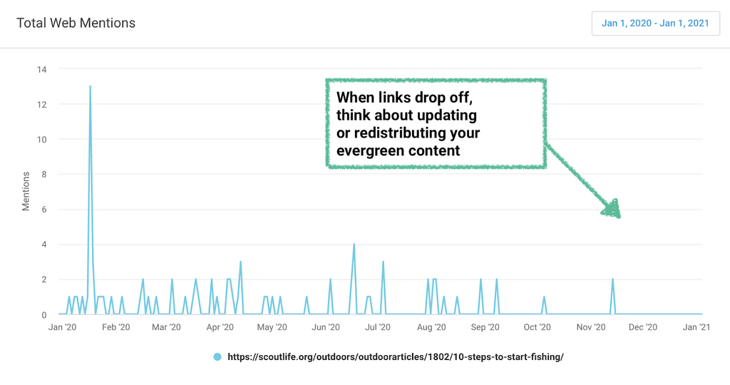 Make sure you set up a backlink alert as soon as you create a new piece of evergreen content.