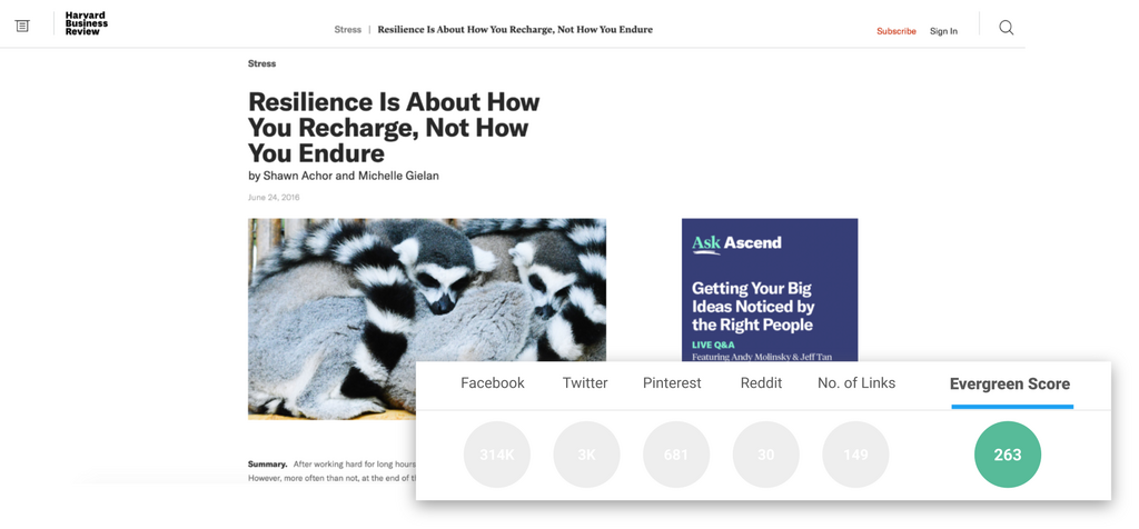 The BuzzSumo Evergreen Score is a quick and easy way to assess the relative success of your evergreen content...