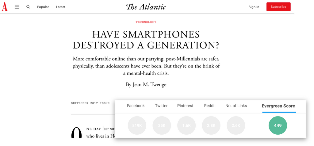 At BuzzSumo, we have devised and assigned an Evergreen Score to the 8bn+ pieces of content in our index.