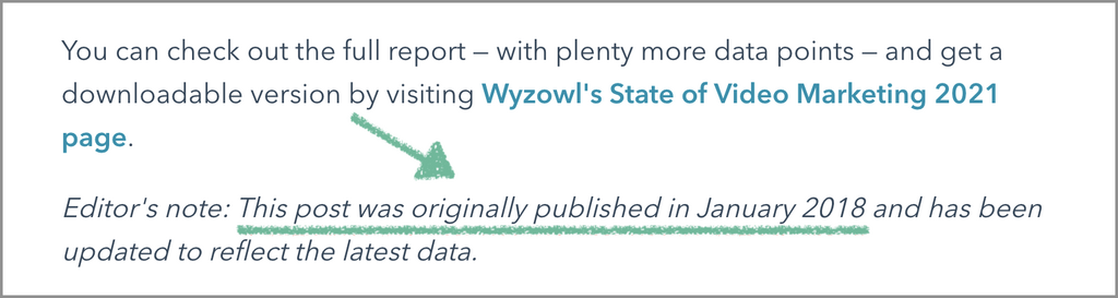 • Hubspot makes a point of informing readers of content updates at the bottom of the article.