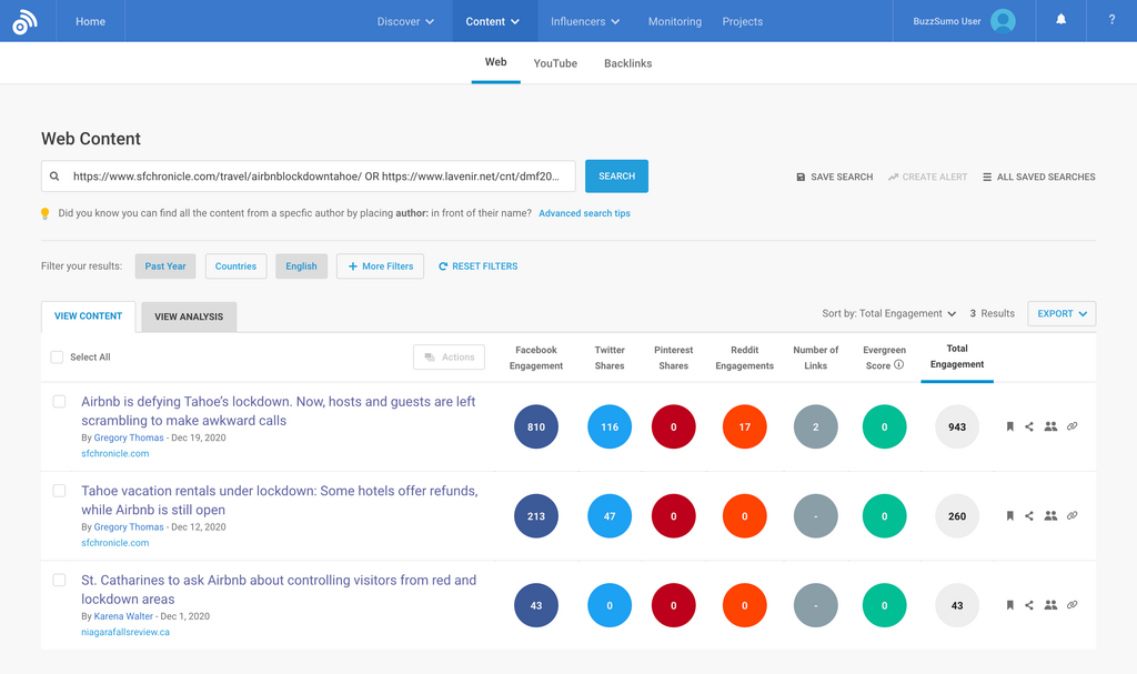 2. Another way is to use the BuzzSumo Content Analyzer. If you don’t already have tracking set up – or you didn’t at the point of your previous crisis – head to the Content Analyzer.