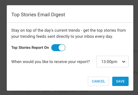 Some of our large, global customers also choose to monitor trending news around their brand in the form of a daily digest to their inbox, using BuzzSumo’s Trending tool.