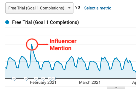 We’re in the fortunate position that these mentions came about organically, and lead to our highest spike in free trial signups of 2021.