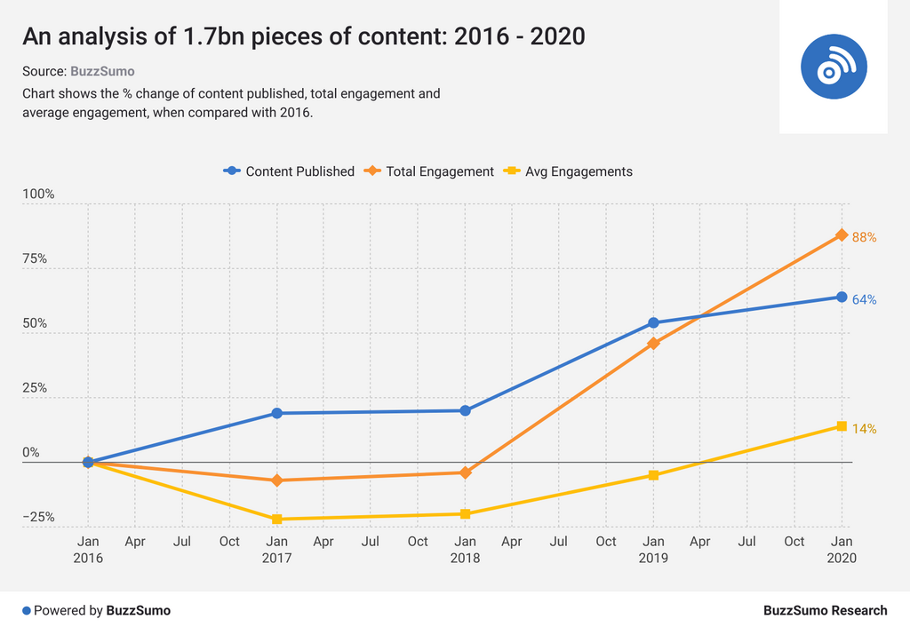 In a recent study of 1.7bn articles, we found that all content published online has increased by 64% since 2016.
