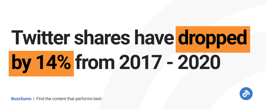 I turned to BuzzSumo to figure this out, and from an analysis of 11 million Twitter engagements, I found that Twitter shares had dropped by 14% from 2017 – 2020.