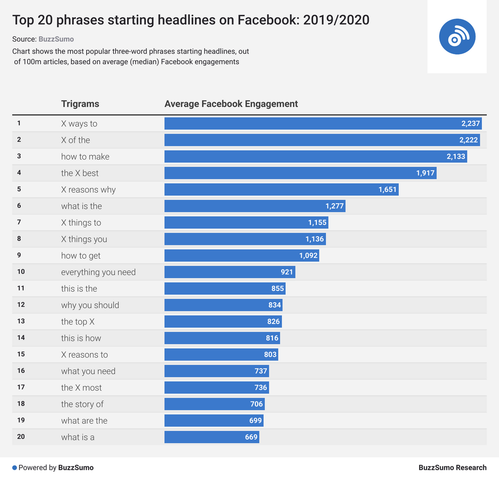 So, what constitutes a “good” headline? Inspired by BuzzSumo co-founder Steve Rayson's much loved most-shared headlines study back in 2017 (Read below), we have once again dug into the BuzzSumo index to analyze a casual 100 million headlines.
