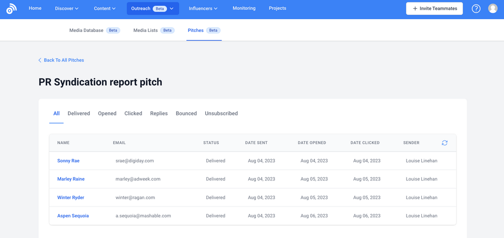 Know who's picking up your pitches, so you can report back to clients on progress, and make your follow ups count.