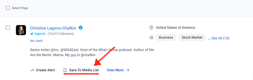 Then when you’ve found your top journalists, hit “Save to Media List” to start your outreach.