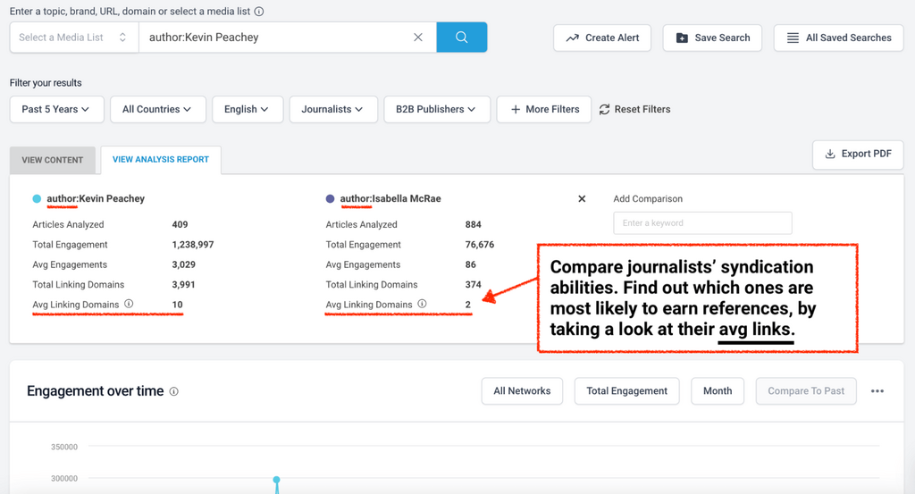Once you’ve found the top journalists, take them over to BuzzSumo’s Content Analysis Report.