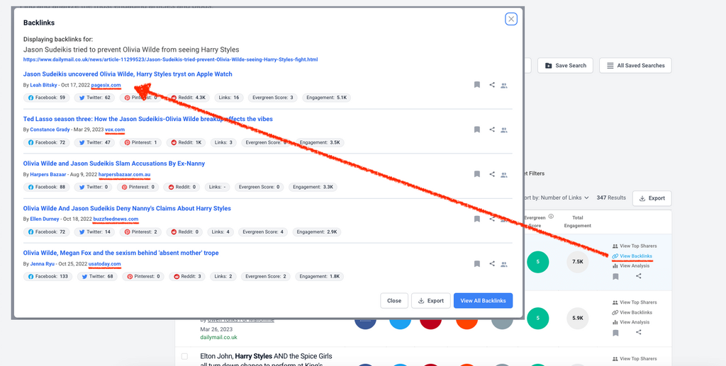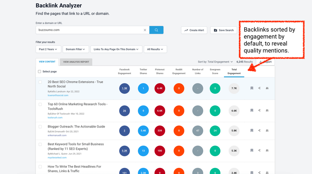 At BuzzSumo, we contextualize all our backlinks with engagement data, to help you prioritize your most engaging coverage.
