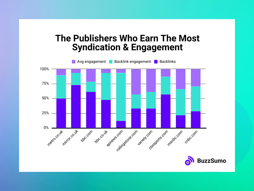 NB: Not all links in this study will be representative of syndicated media. That said, the research proves that major, unrelated publications do pass significant authority to each other. Studying the connections between the content of the top 100 most engaging publishers goes a long way to inferring syndication, or at least strong connections.