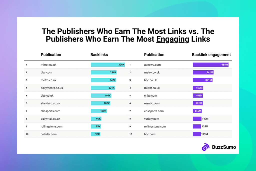But the publisher that earns the most engaging backlinks overall is Associated Press News; racking up 585M engagements from its connections.