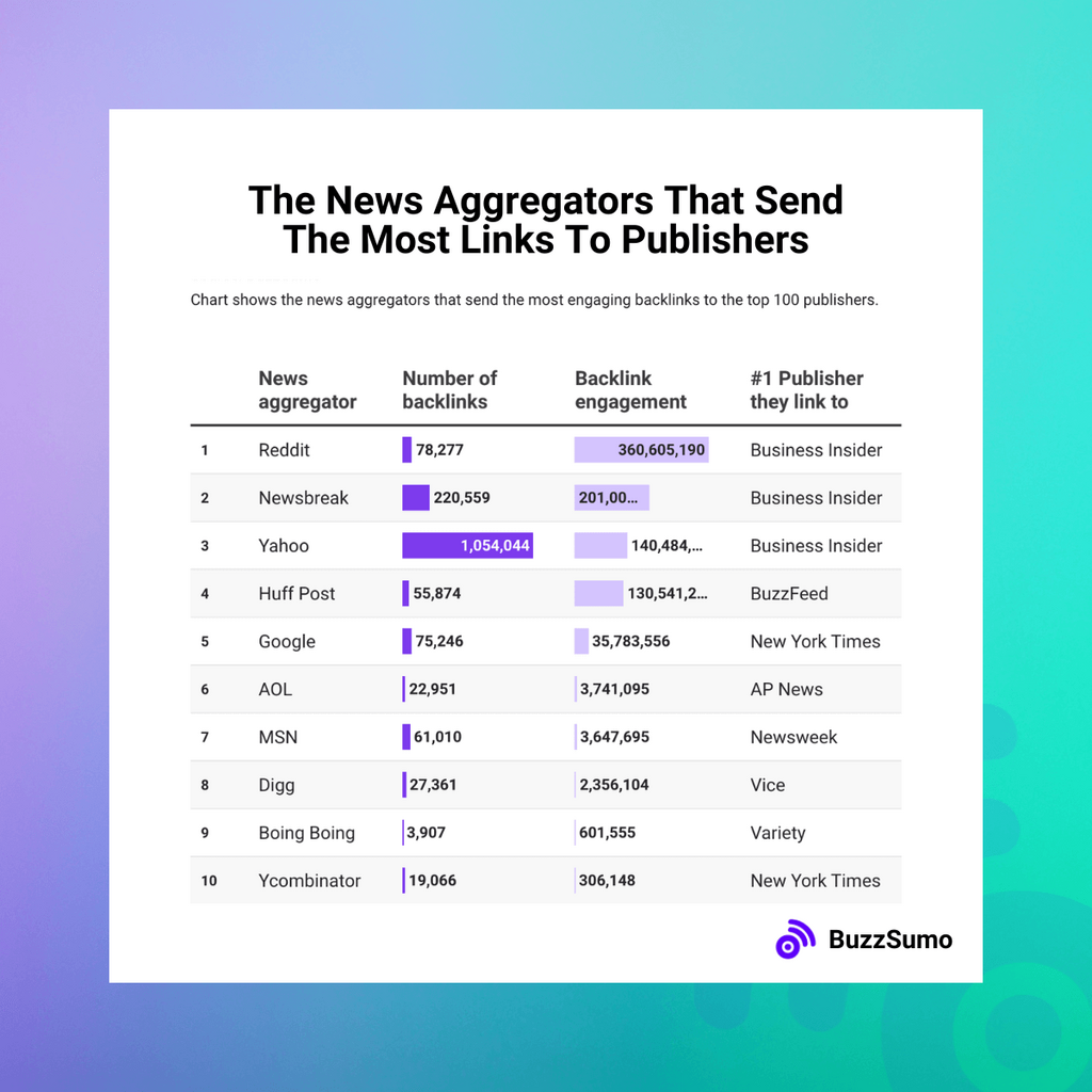 Reddit, NewsBreak, and Yahoo send the most engaging backlinks of all news aggregators.