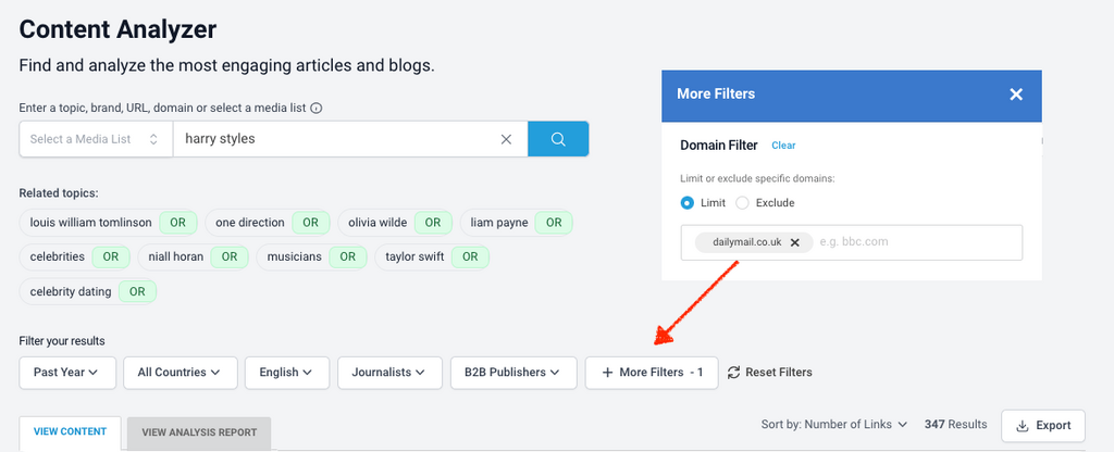 This will help you filter out non-media content (ie. B2B content, or blogs), and home in on press articles. If you need to refine the results further, change the “Publisher size” filter.
