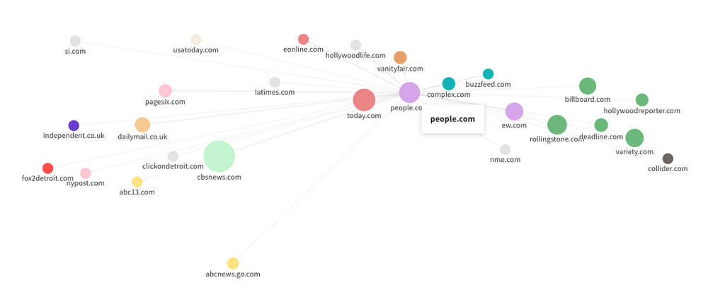 What’s even better is that individual articles published on People see high average engagement, as evidenced by the size of the circle in our network graph (see below).