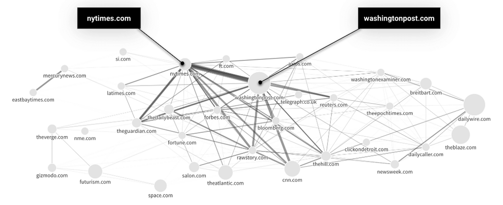 Judging by the engagement of the links sent from the Washington Post to AP News (580M), it can be assumed the WP syndicates a lot of AP News’ content.